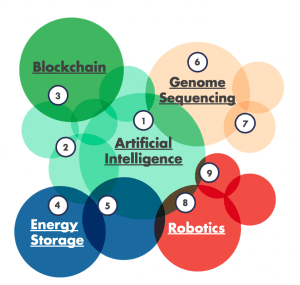 Through an open research process that cuts across sectors, industries, and markets, ARK seeks to identify innovation platforms with dramatic cost declines, strong price elasticity of demand, and convergence which spawns further innovation.3 Today, we believe that artificial intelligence, energy storage, robotics, genome sequencing, and blockchain technology are the innovation platforms leading the global economy into what could be the most transformative period in history.