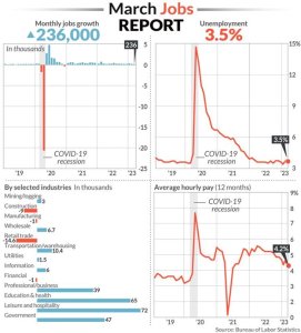 Found this visual analysis of the situation, as told through the March employment report. If you are a bull on the economy, this is a very pretty picture. Job growth is solid, employment rate is low, wage inflation has moderated, and all seems pretty good given the jihad that the Fed declared against low interest rates.
