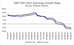 Similar chart, but this one is only showing for the first quarter of 2023. Is this the worst thing in the world? Not really. While it’s put a lid on stock advancement, it shows that the Fed is doing its job of slowing economic growth. If we were still going gangbusters at around 10% to 15%, Chairman Powell and the Powllettes at the Federal Reserve would have multiple 50 basis point hikes in the chamber.
