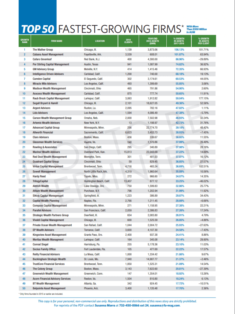 Axxcess Wealth Management has been named as the 20th fastest growing firm in the country.