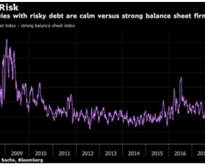 This slowing of the economy, if it persists, could be rough when coupled with the complacency in the bond markets. The market’s reaction within the various segments of the equity markets has been eerie:  We have witnessed a relative calm in debt-laden companies compared to those with more pristine balance sheets—not something one would expect as the cost of debt increases.