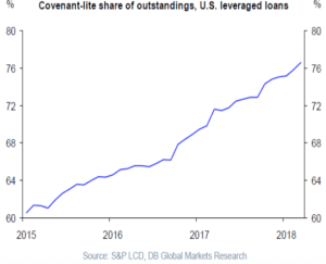 This phenomenon has some themes in common with other extended credit cycles, where optimism built within the debt-heavy sectors even as the risk in those debt instruments increased. Today, we are seeing a growing percentage of debt that carries easier terms (a.k.a., covenant-lite leveraged loans), as shown in the graph below. Add to this the increasing default rates in auto and student loans, and one could make an argument for increased caution.